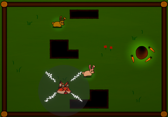 These fields are dangerous - the pits, the dark, the wolf... but it's your job to keep these rabbits safe for 18 Levels!